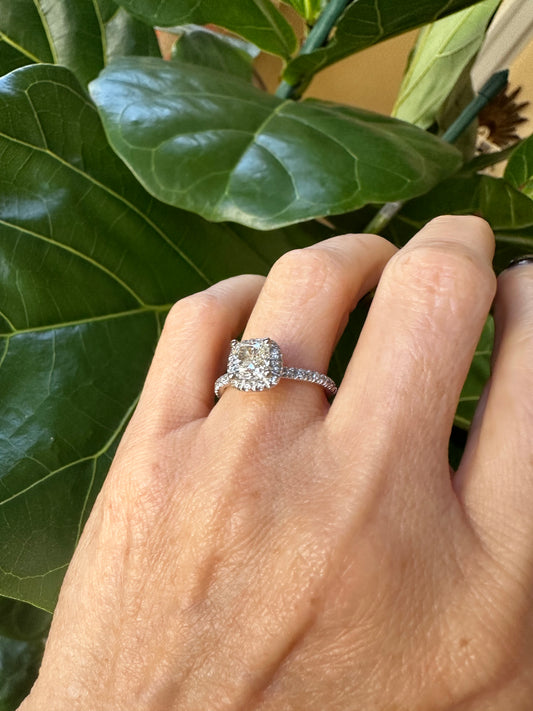 Cushion Cut Diamond Halo Ring White Gold