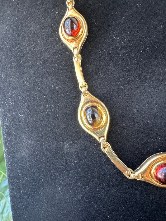Cabochon Citrine Necklace and Earrings Set Signed Petochi Roma 18k
