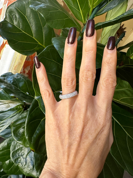 Champagne and White Diamonds in Dome Criss Cross Design Ring 18k Platinum