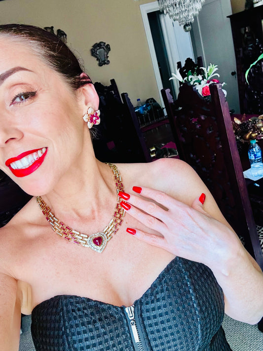 Burma No Heat Heart Ruby and Diamond Necklace 18k