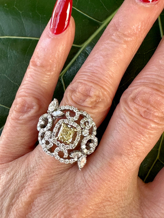 Fancy Light Yellow Radiant & White Diamonds Ring