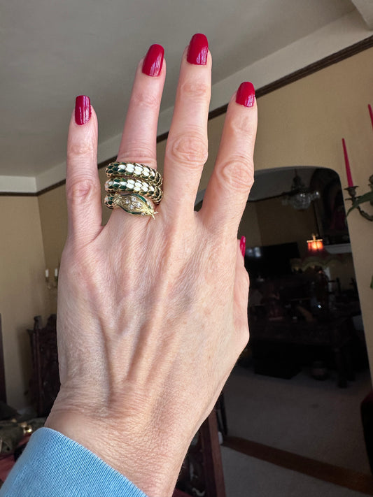 Estate Snake Diamond & Enamel Ring 18k Yellow Gold