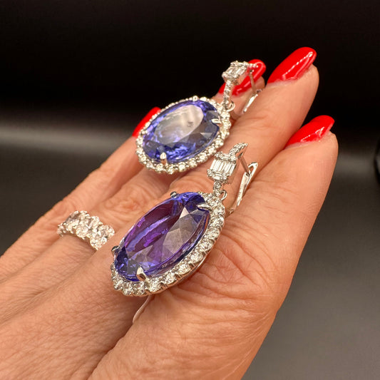 Oval Cut Tanzanite Diamond Earrings 18k White Gold