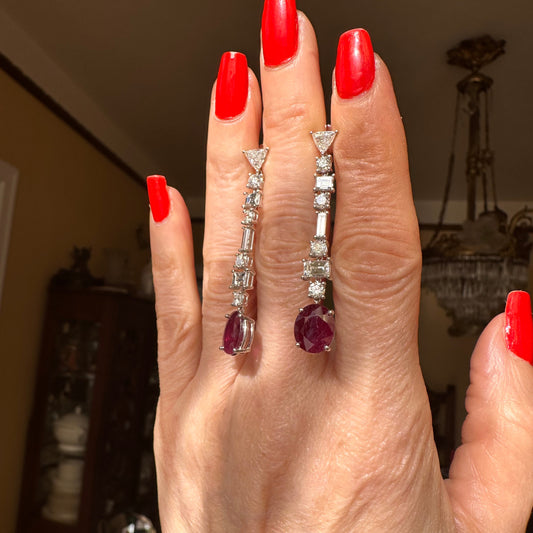 Oval Ruby and Mix Diamonds Dangle Earrings 18k