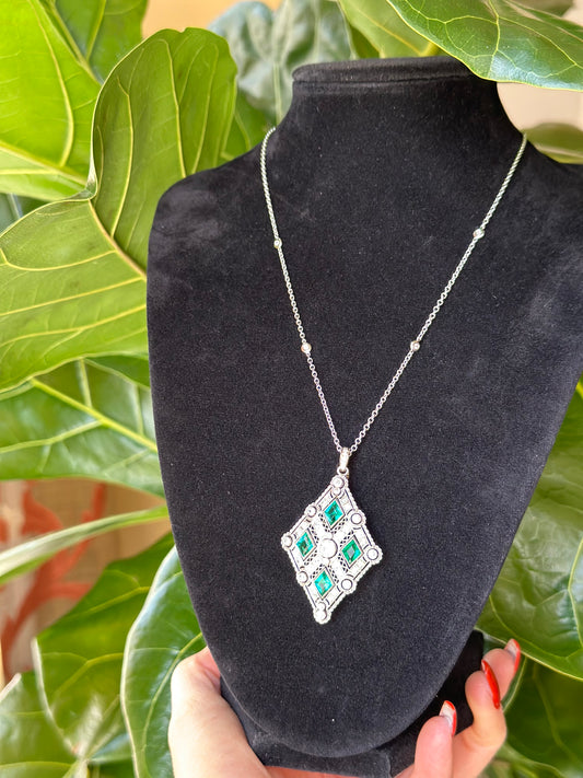 Old European Cut Diamonds & High Quality Emeralds Pendent / Pin & Necklace