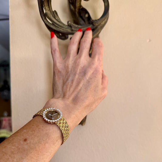 Vintage Universal Geneve 18k Gold Tiger Eye & Diamond Watch