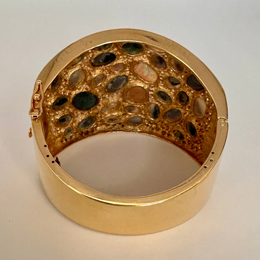 Vintage Opal and Diamond 18k Bangle, Opal Bracelet, October Birthstone Gemstone Bangle, Fiery Opal Bangle