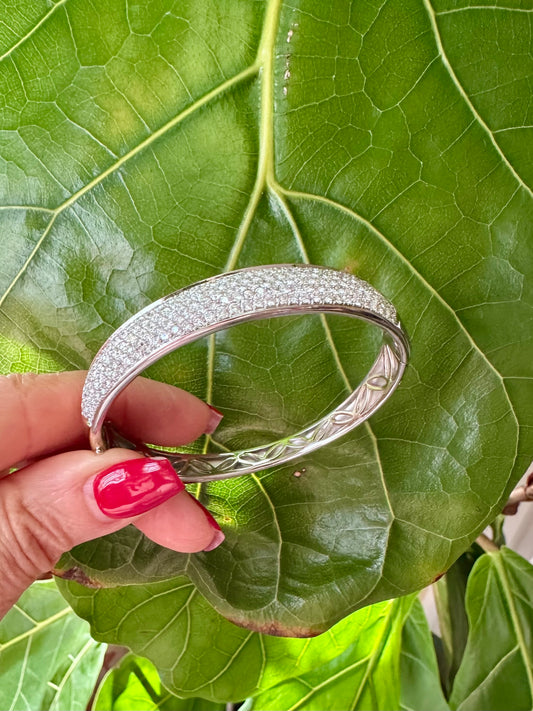 Champagne and White Diamonds in Dome Criss Cross Design Ring 18k Platinum