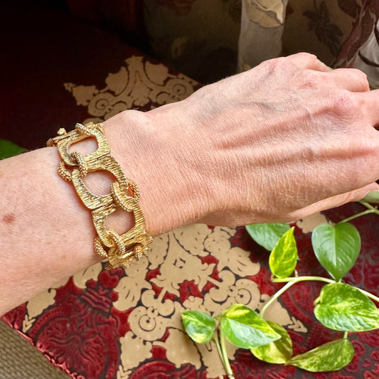 Vintage Bark Finish Geometric 18k Yellow Gold Link Bracelet