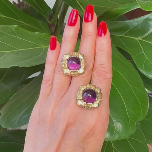 Sugarloaf Amethyst 18k Yellow Gold Earrings, Button Earrings, Designer Jewelry, September Birthstone
