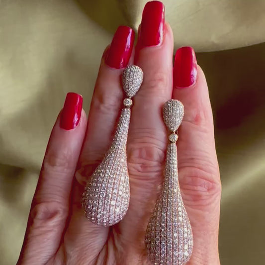Tear Drop Diamond Pave Earrings 18k Rose Gold