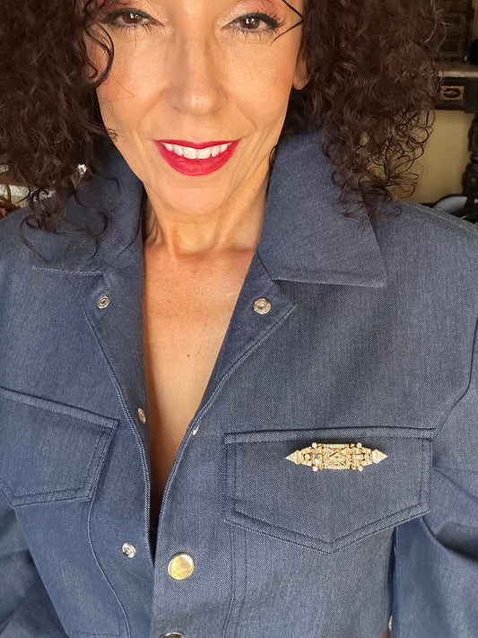 Vintage Multi Shape Cut Diamond Brooch/Pin 18k Yellow Gold