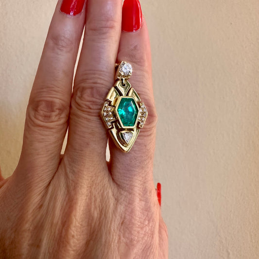GIA Certified Hexagonal Emerald F1 & Diamond 18k Yellow Gold Pendant