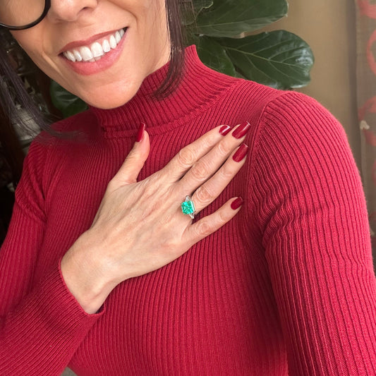 Triangular Brilliant Cut Diamond Triangular Step Cut Emerald Ring, Cocktail Ring, May Birthstone, Wedding Jewelry