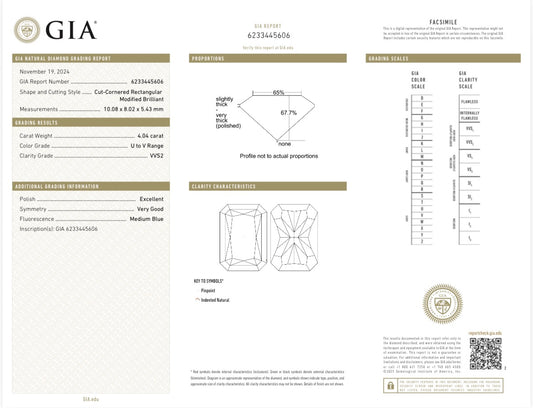 GIA Certified 4.04 Radiant U-T VV S2 Diamond Ring 18k Yellow Gold
