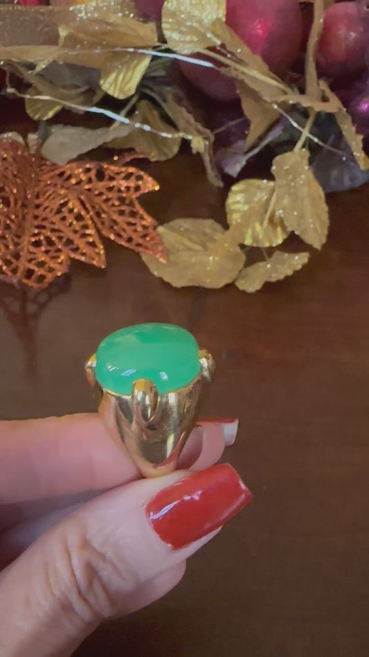 Vintage Signed SAROSI Chrysoprase Ring 18K Yellow Gold