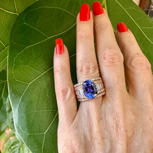 Tanzanite Diamond 18k Rose Gold Ring, Cocktail Ring, December Birthstone