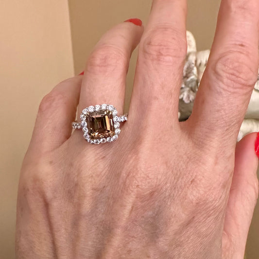 Fancy Dark Yellow Brown Emerald Cut Diamond Ring, Engagement Ring 18k