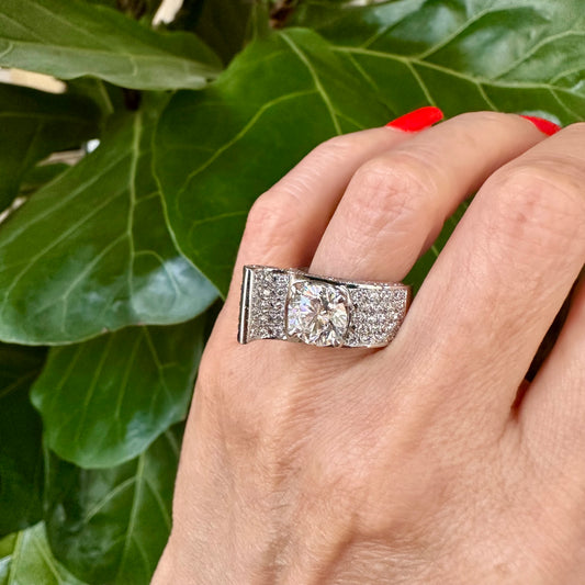 Cocktail Diamond Platinum Ring, Engagement Anniversary Statement Ring