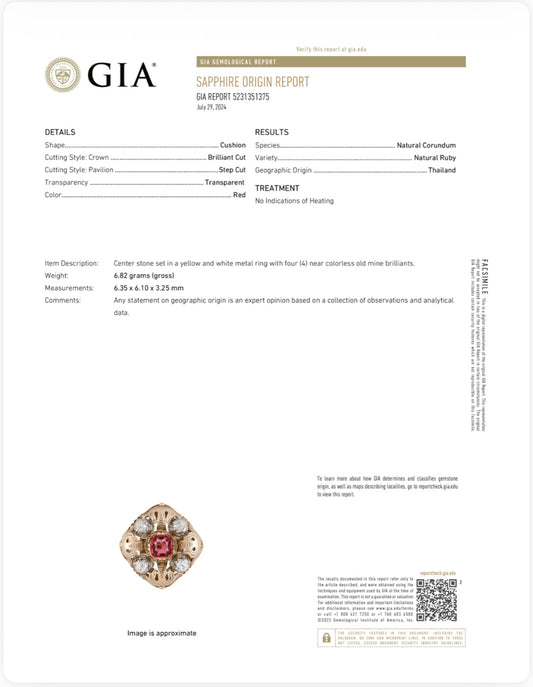 Antique Thai No Heat Ruby and Diamond Ring 14k Yellow Gold
