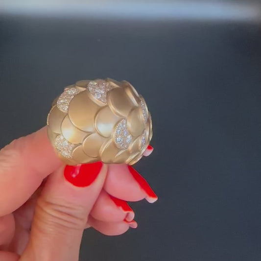 Pomellato Estate Dome Diamond 18k Rose Gold Ring, Fish Scale Diamond Ring, Statement Ring