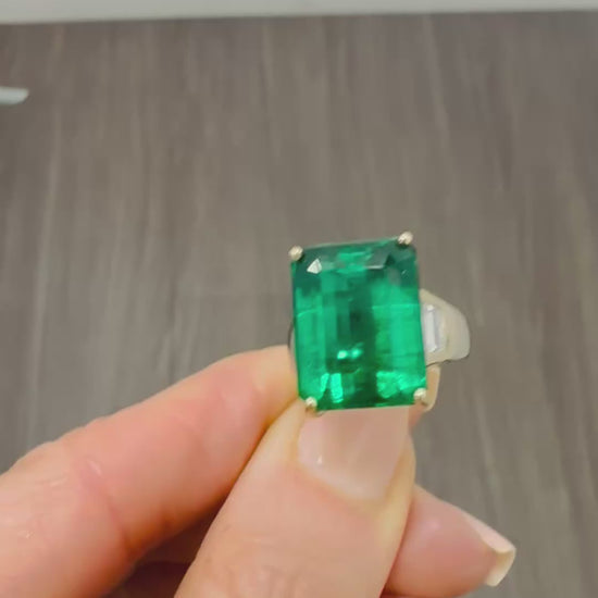 13.01 African Step Cut Vivid Green Emerald & Diamond Ring 18k Gold