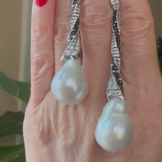 Assael Inc. South Sea Baroque Pearl, White & Black Diamond Earrings 18k