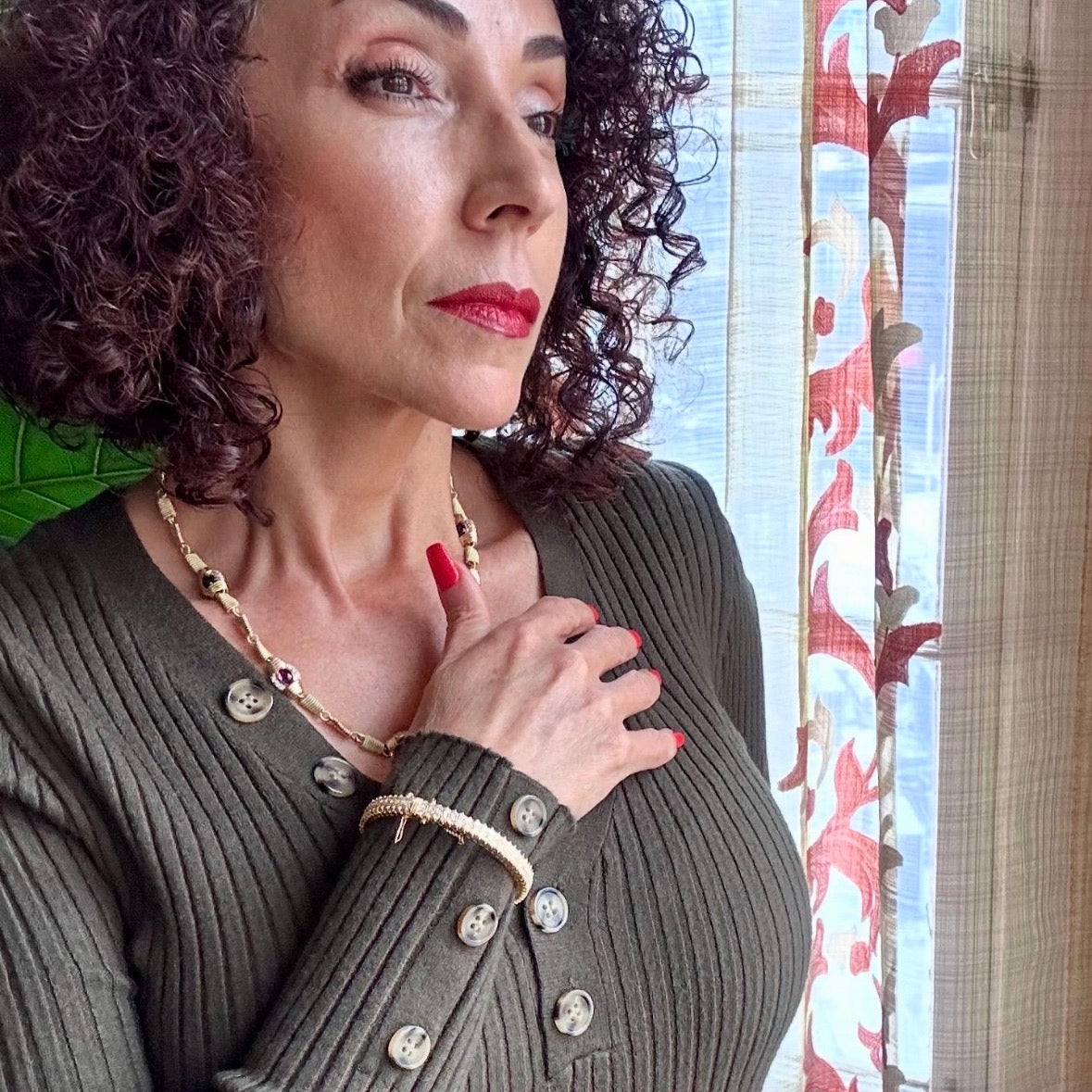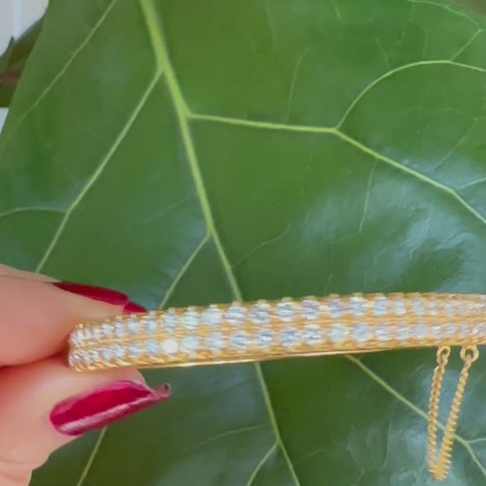 Chic Double Row Diamond Bangle Bracelet 18k Yellow Gold