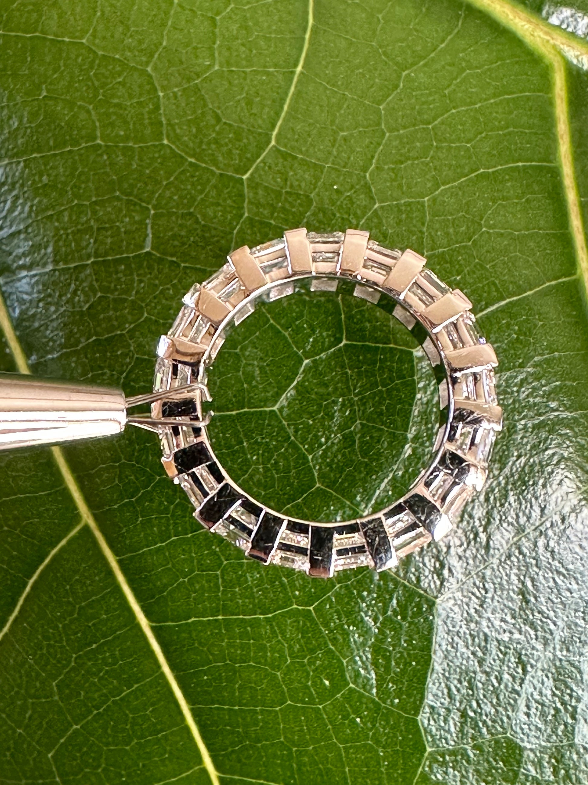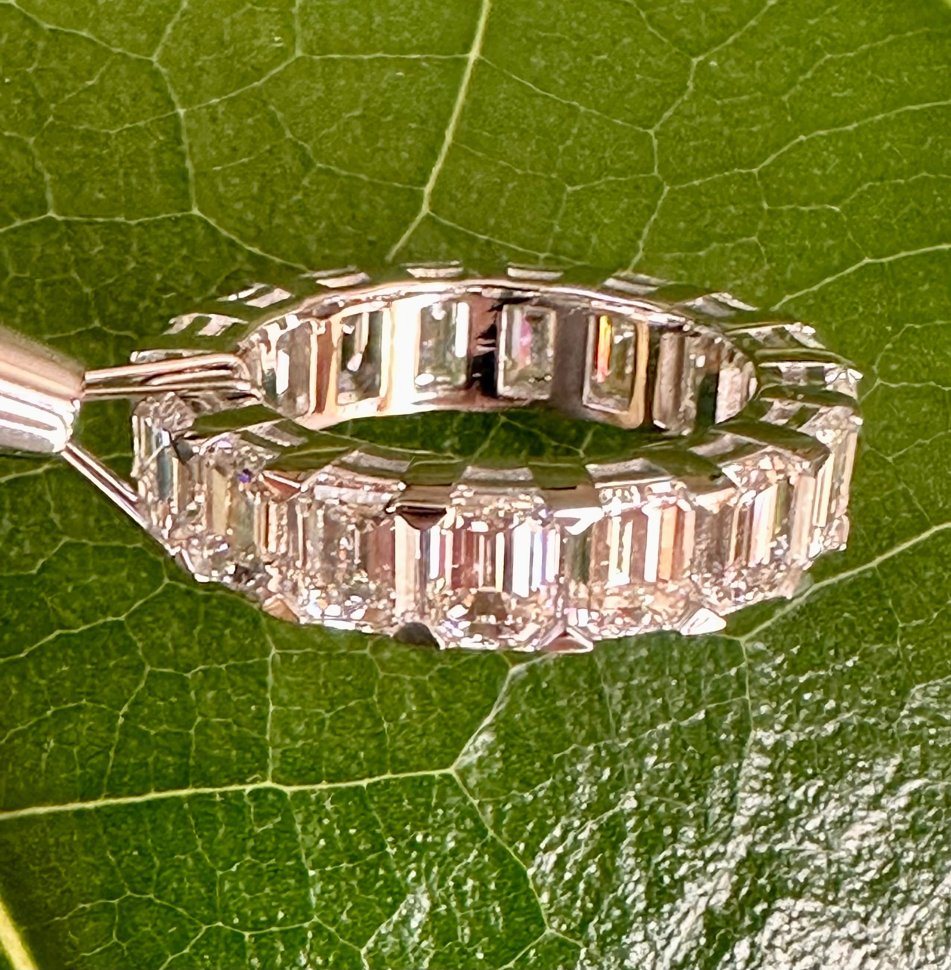 This exquisite emerald cut diamond eternity ring boasts a collection of 17 clean, white, and very good graded diamonds set in 18k white gold. Perfect for anniversaries, birthdays, and Mother's Day, this timeless piece is sure to make a cherished and elegant gift.