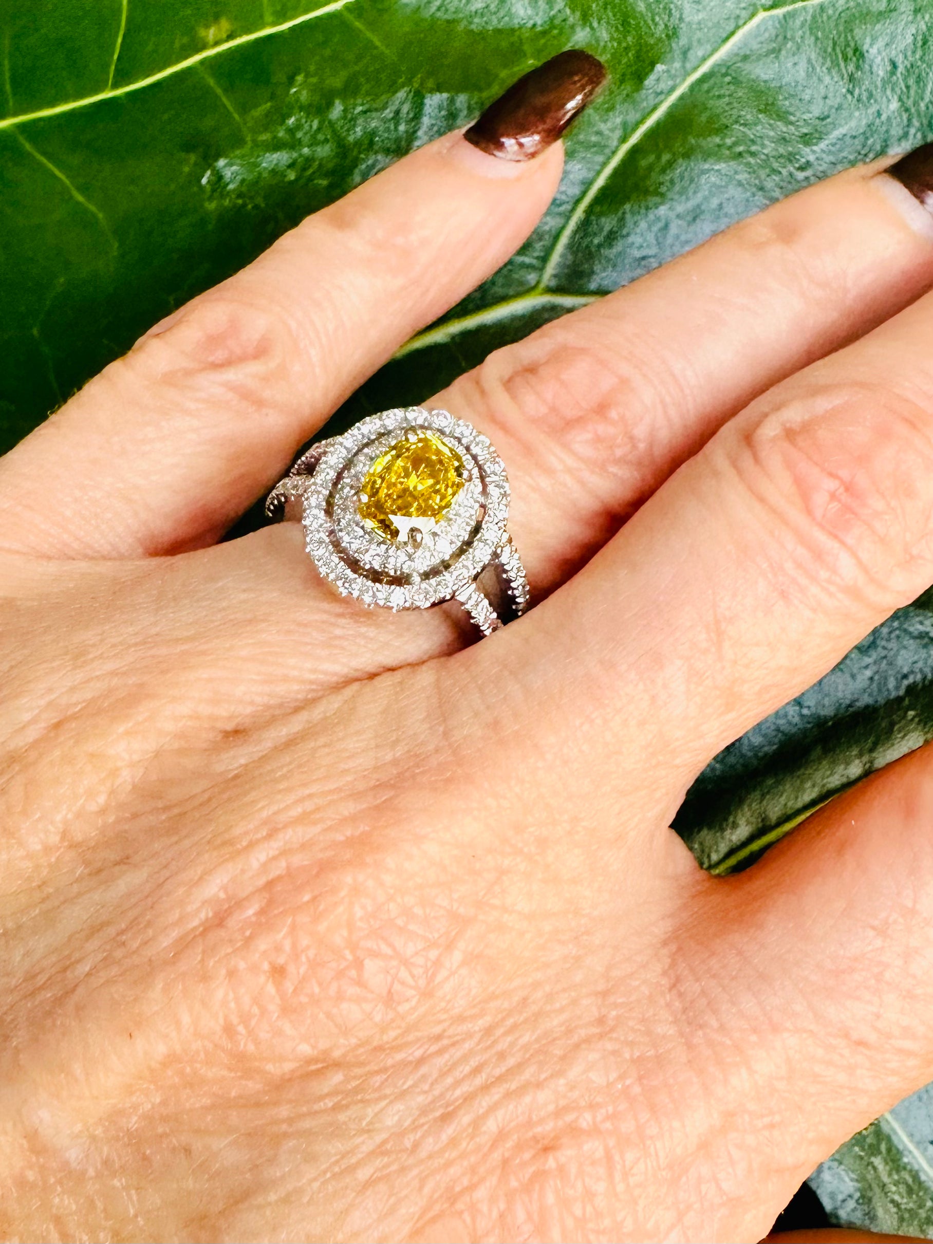 Fancy Dark Yellow Diamond Halo Setting in Platinum
