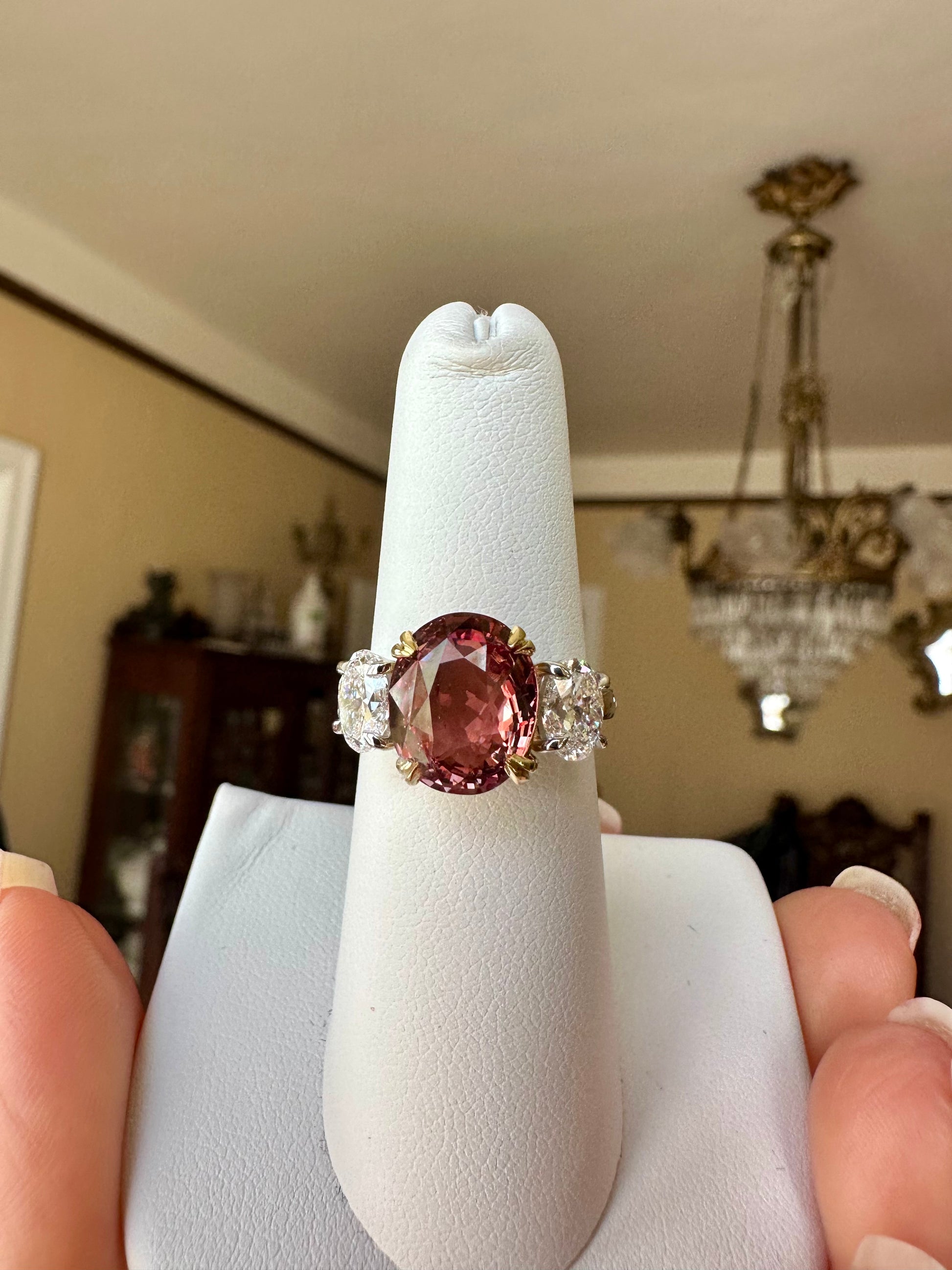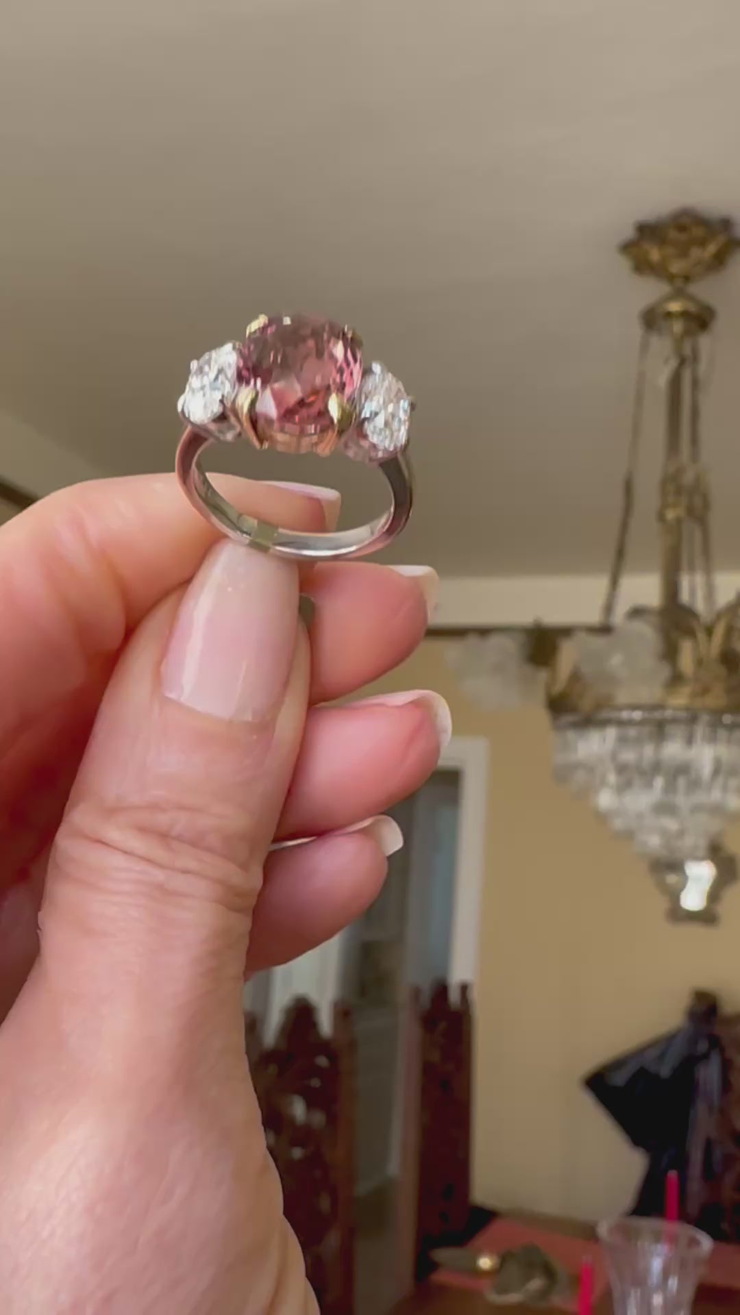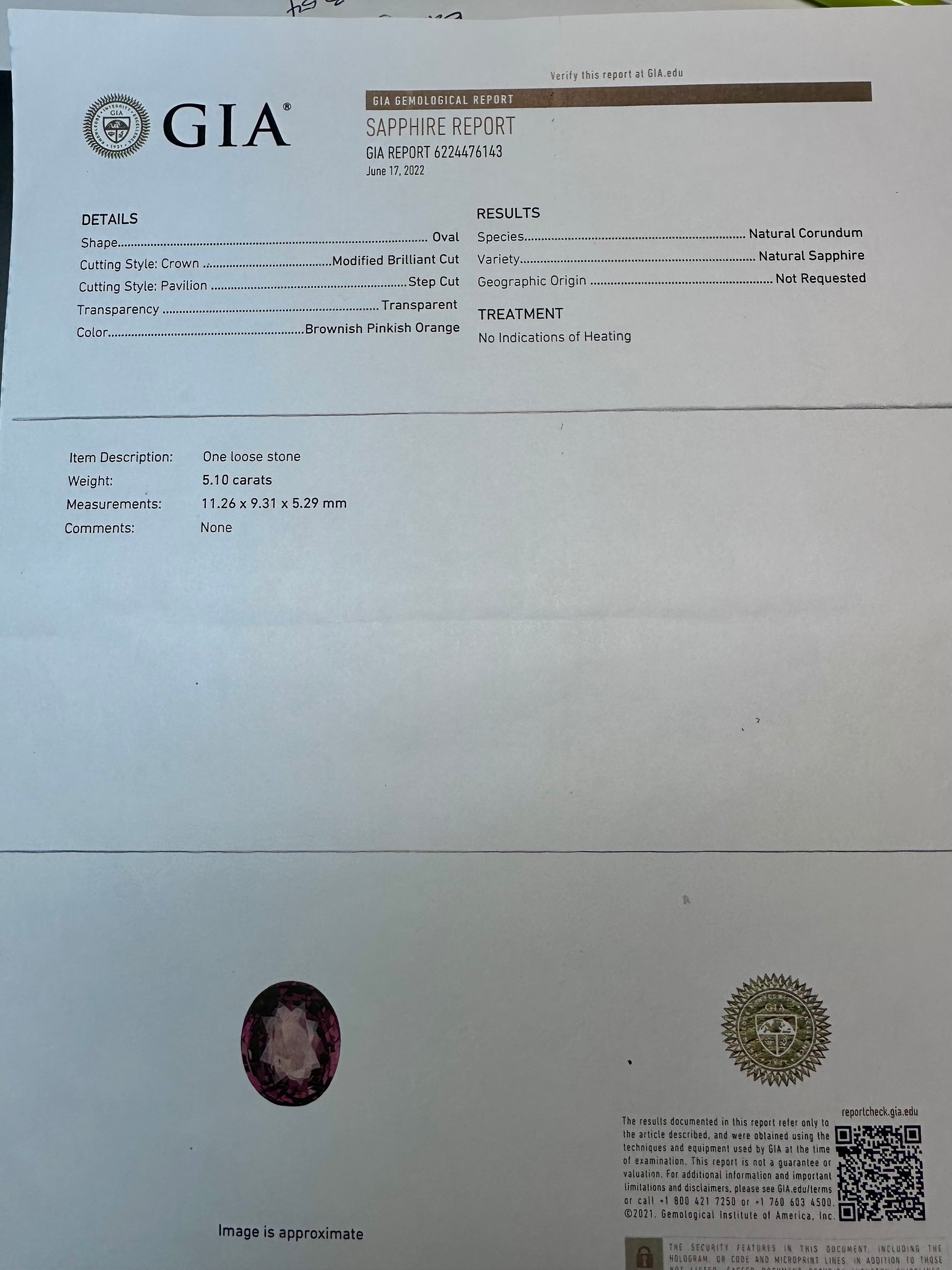 GIA Certified Brownish Pinkish Orange Sapphire & Diamond Ring