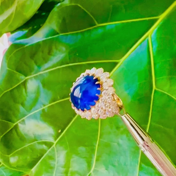 Gorgeous Cabochon Sapphire Diamond Ring 18k