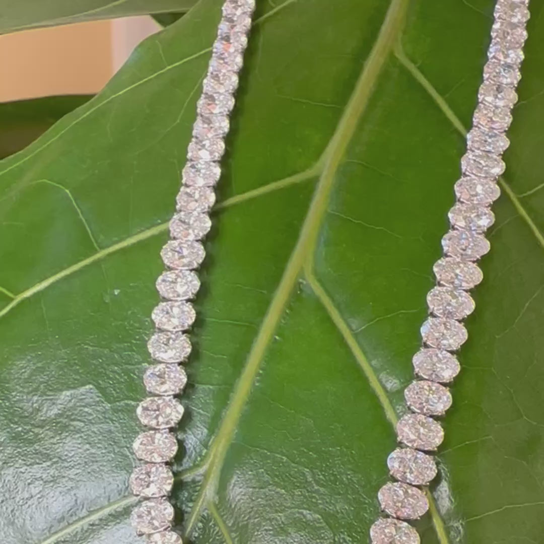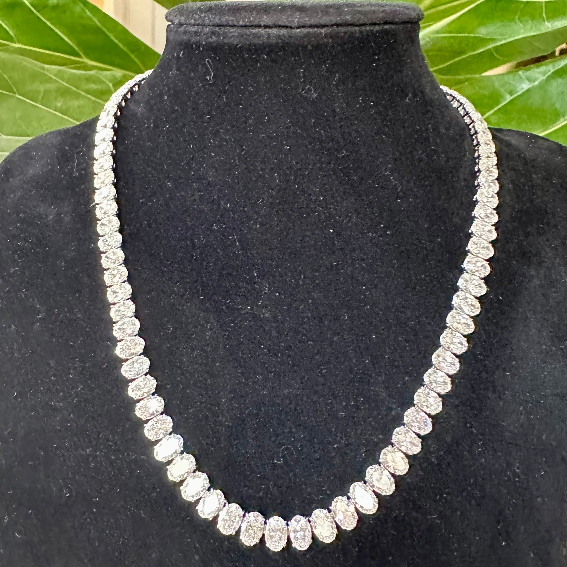 Oval Cut Diamond Tennis Necklace 18k White Gold, Natural Diamond, Wedding Jewelry