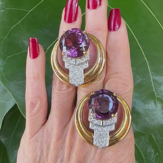 Retro Amethyst and Diamond Earrings Platinum & 18k Yellow Gold