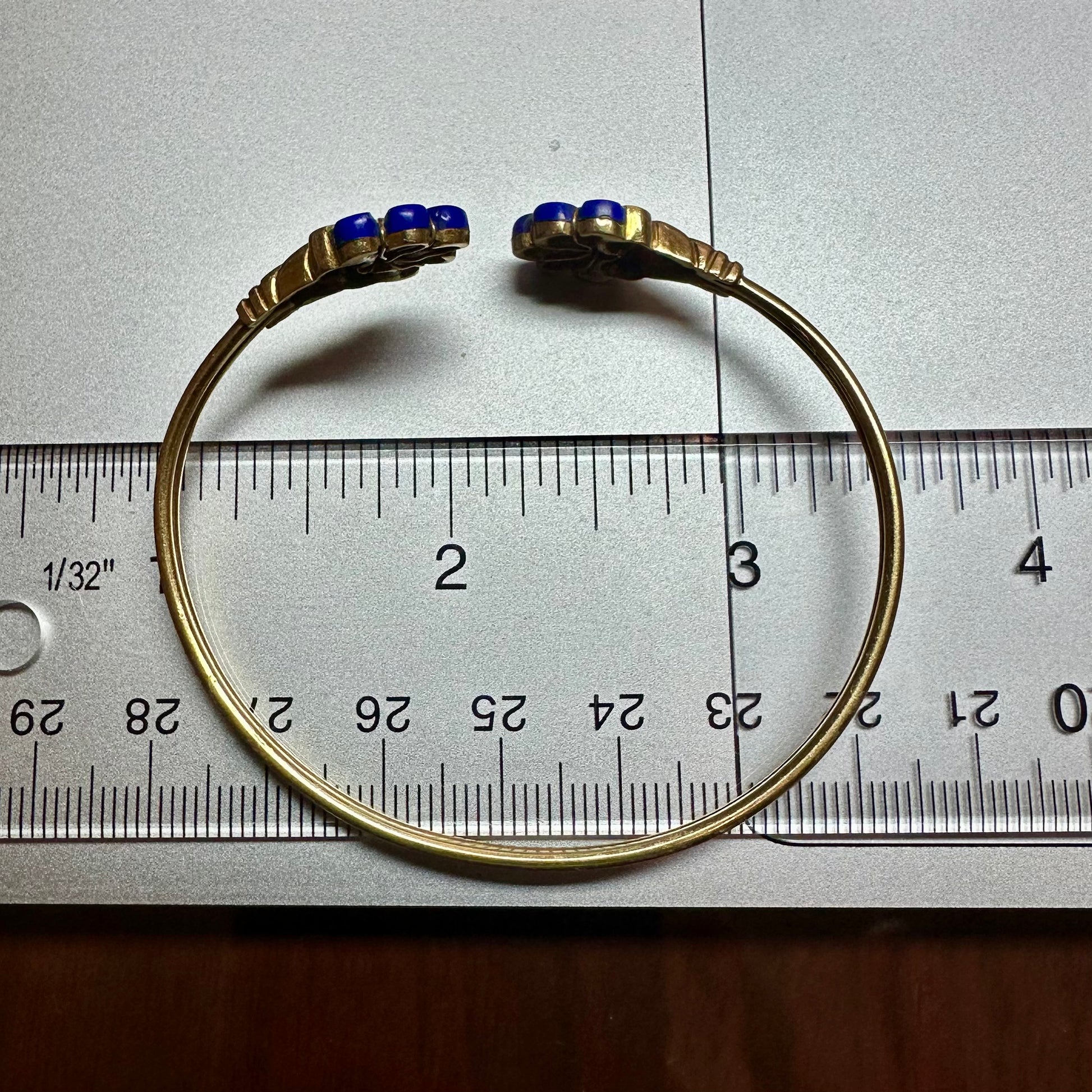 Vintage Carved Lapis Lazuli Floral Cuff 18k Yellow Gold