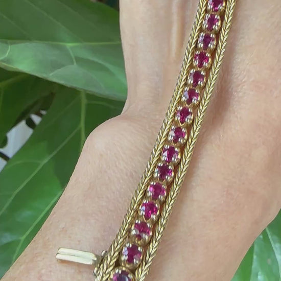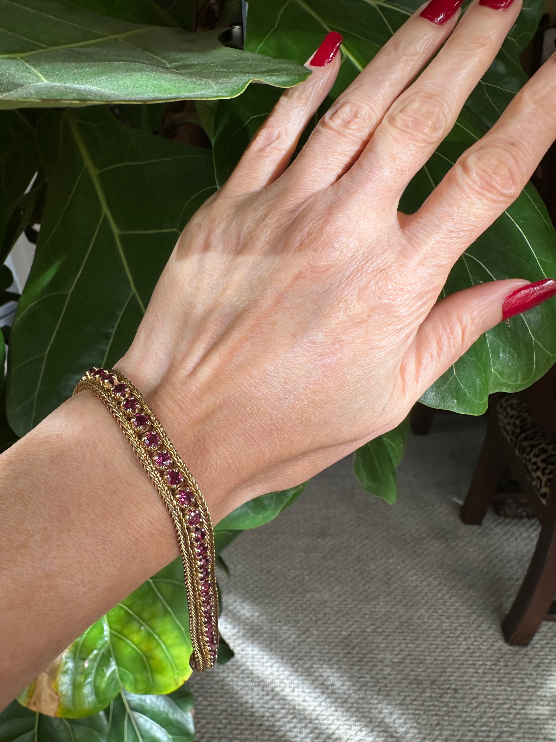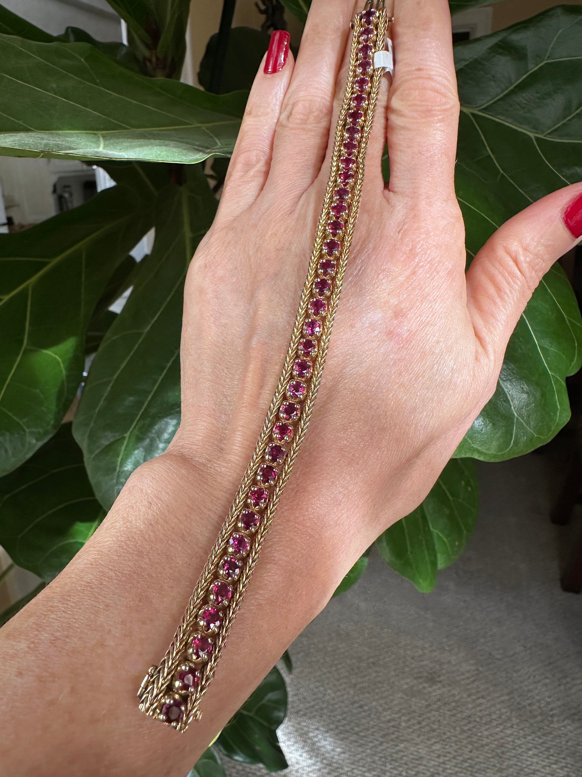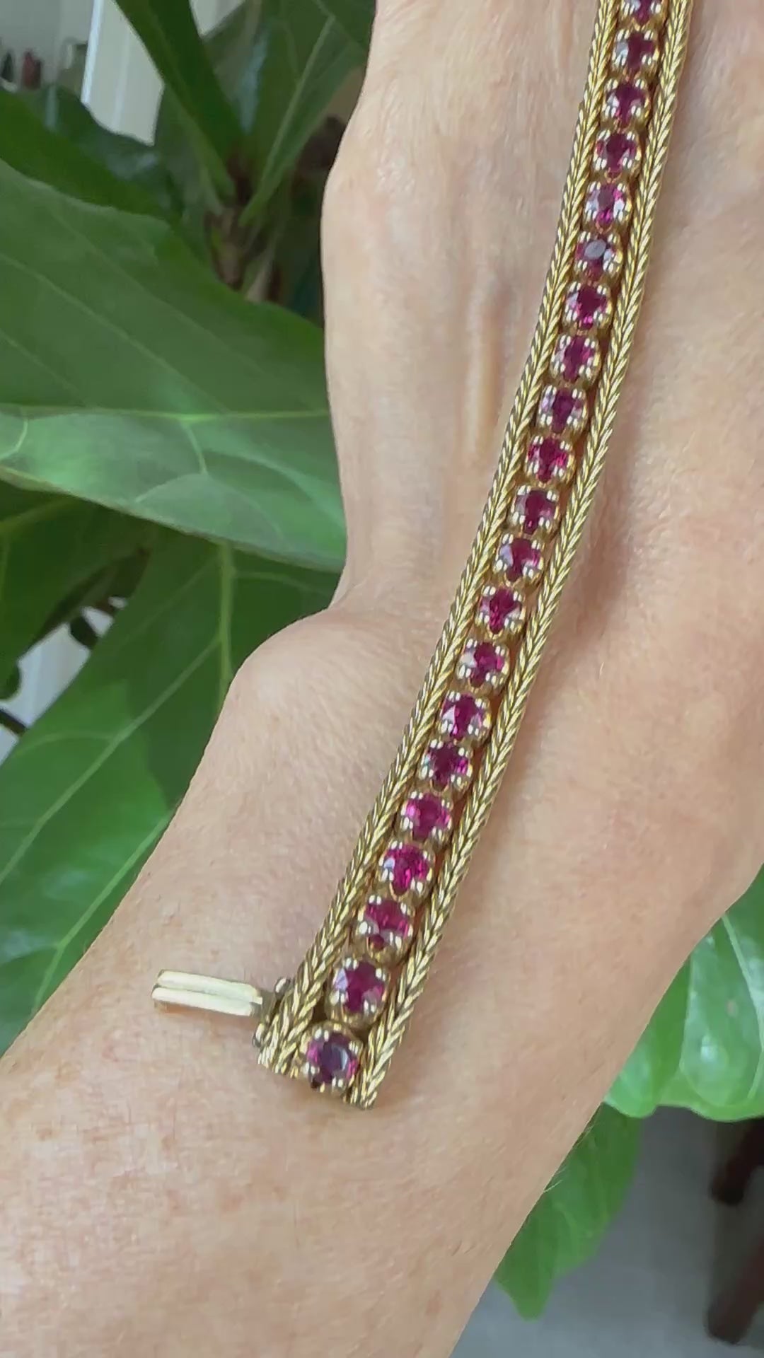 Vintage Ruby Tennis Design Bracelet in 14k Yellow Gold