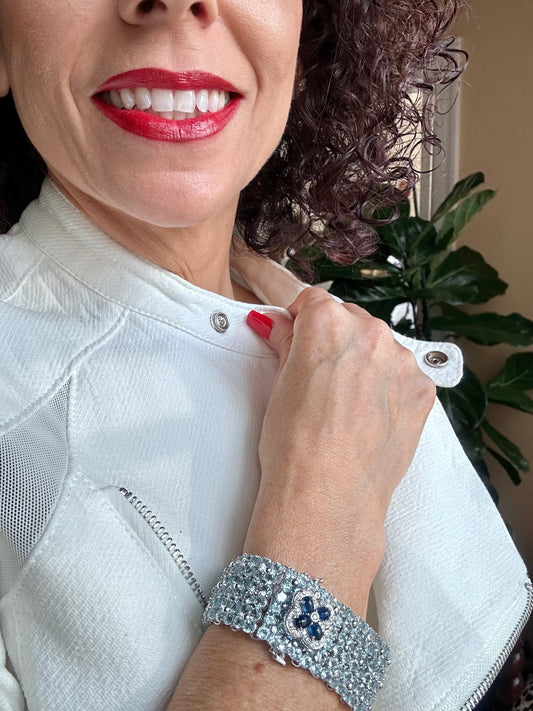 Aquamarine , Diamond & Sapphire Bracelet White Gold